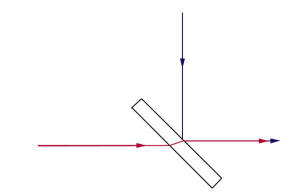 合束鏡被理想的用于利用紅光二極管做校準和指示的系統(tǒng)中,設(shè)計用于45度入射時,傳輸激光光束,并利用90度反射650nm紅光光束來做指示和校準激光位置。合束鏡的原理如下圖所示: