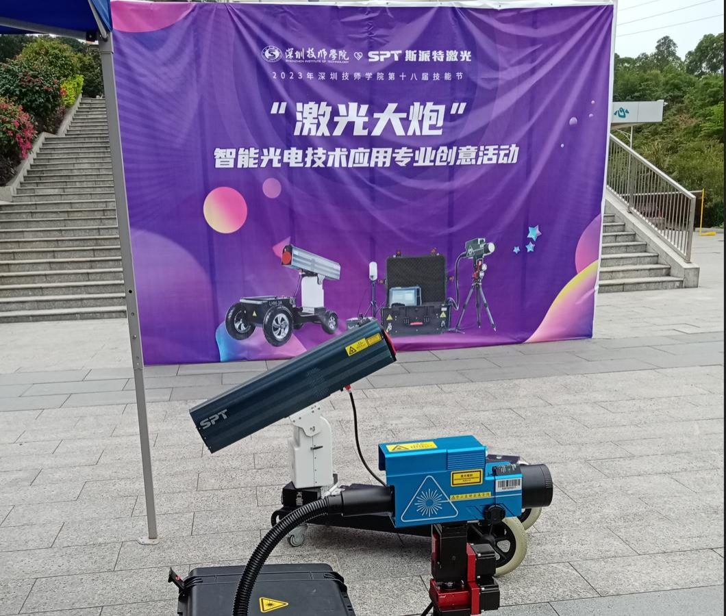 2023年4月12日(周三)下午深圳技師學院第十八節能節盛大開幕,深圳技師學院聯手斯派特激光,在深圳技師學院學生服務中心門口廣場舉辦智能光電技術專業激光“大炮”創意活動。