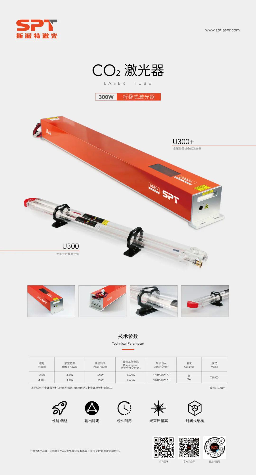 SPT斯派特激光將攜CO2射頻激光器和CO2激光管亮相此次展會。其中,此次在展會中展示的U系列CO2激光器,采用了雙管并聯(lián)折疊方式,延長諧振腔,提高光電轉(zhuǎn)換率。在輸出更穩(wěn)定、使用更安全的同時,實(shí)現(xiàn)更大功率, 適用于大功率切割 。