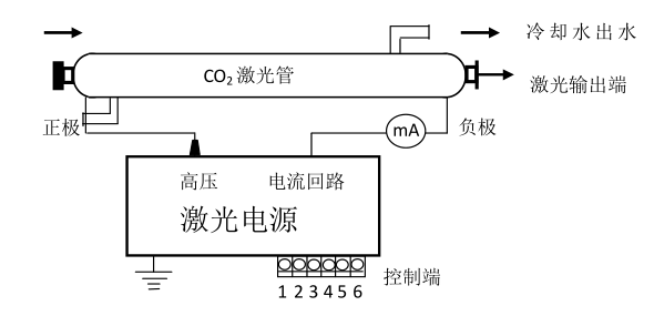 激光電源的電、回路通過電流表(或直接)與二氧化碳激光管的陰極(激光輸出端)相連。