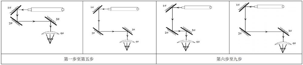第八步:如果 3#反射鏡膠紙上的兩個標記不重合,調整 2#反射鏡,使這兩個標記中心重合。