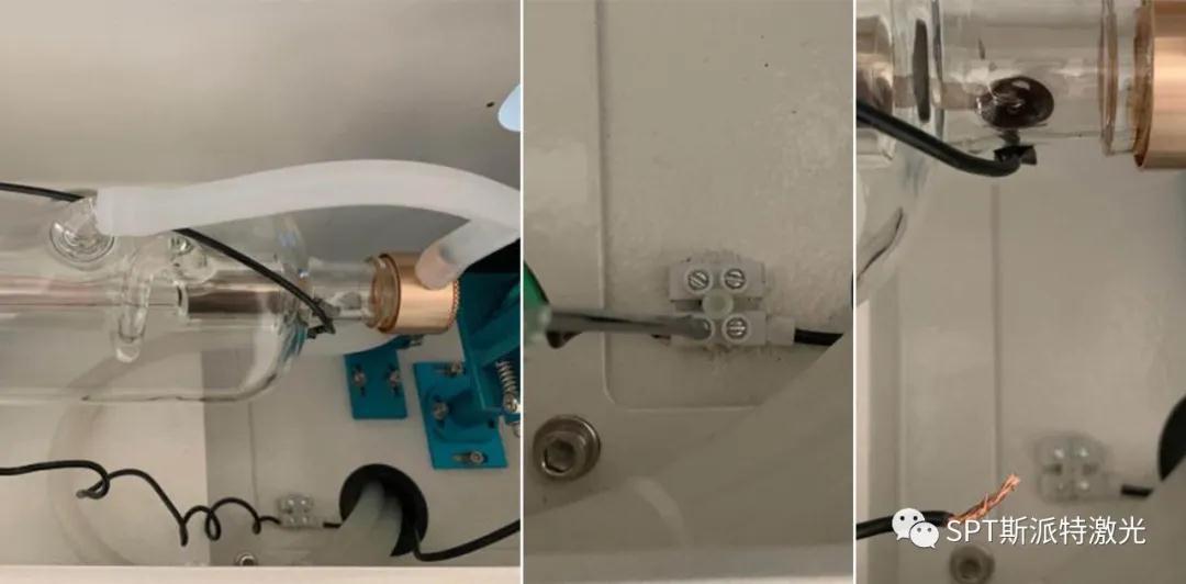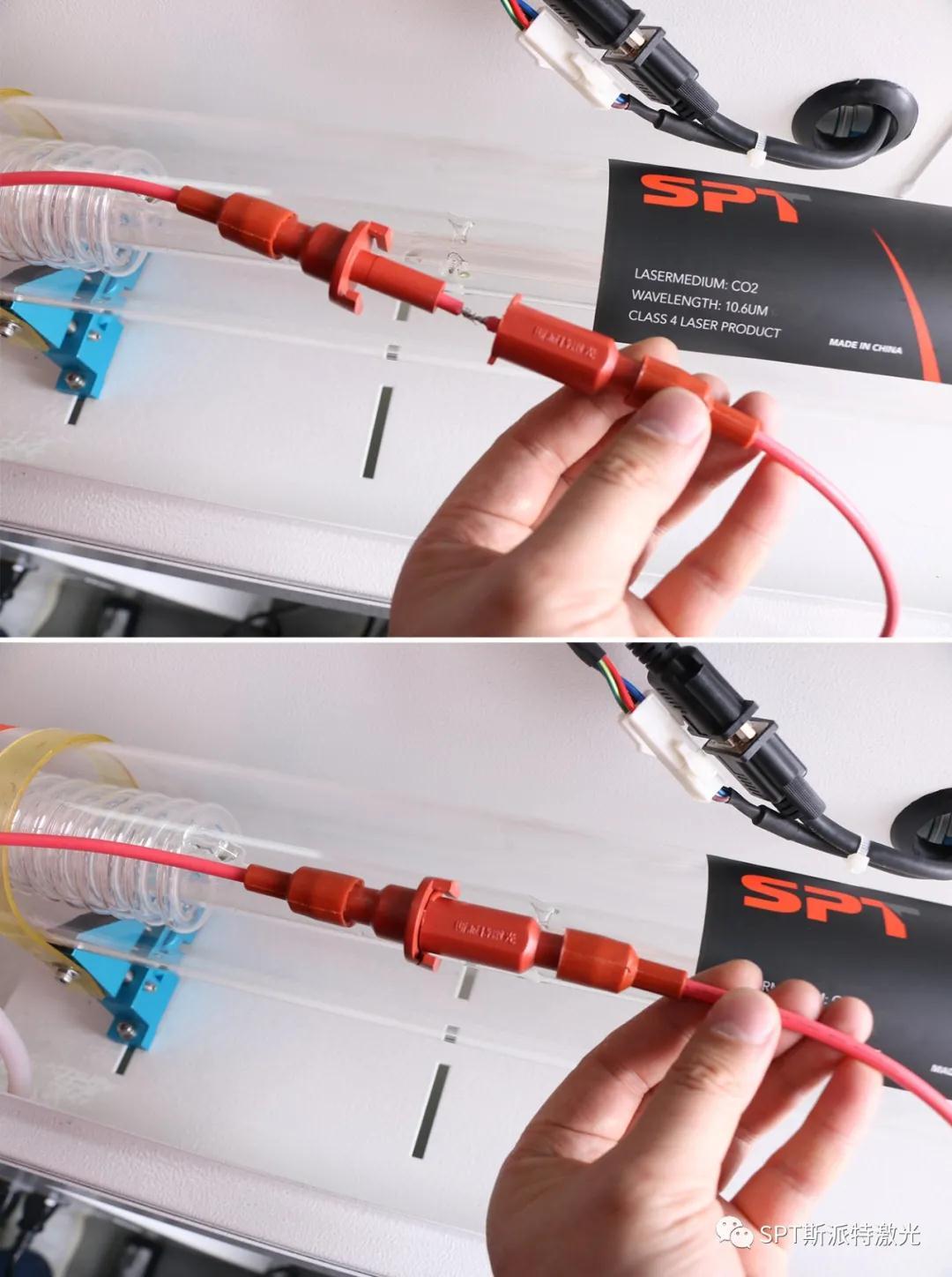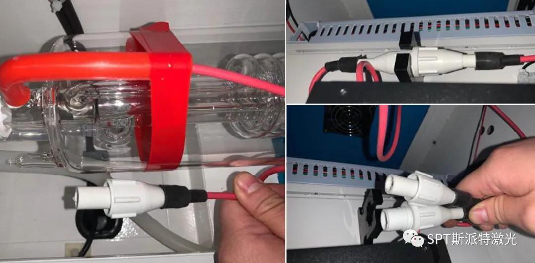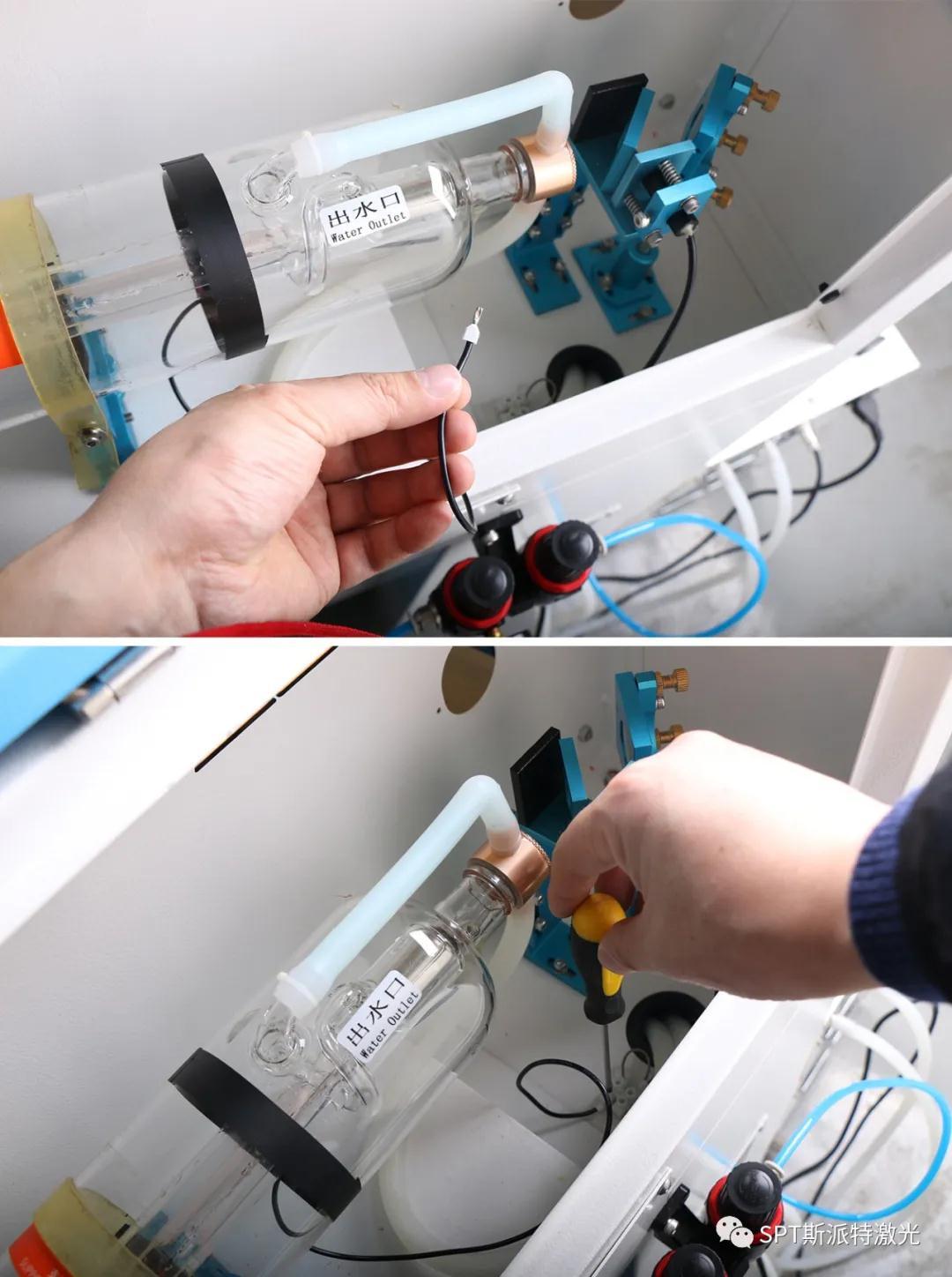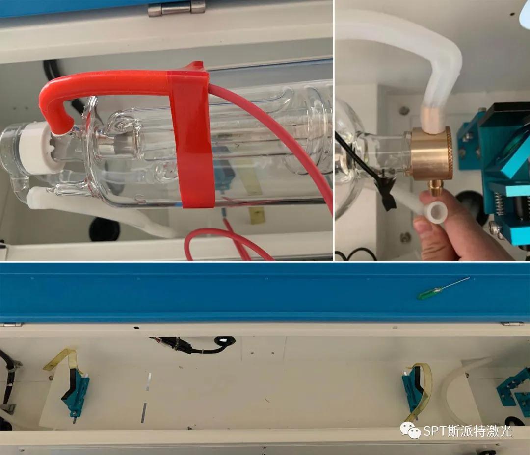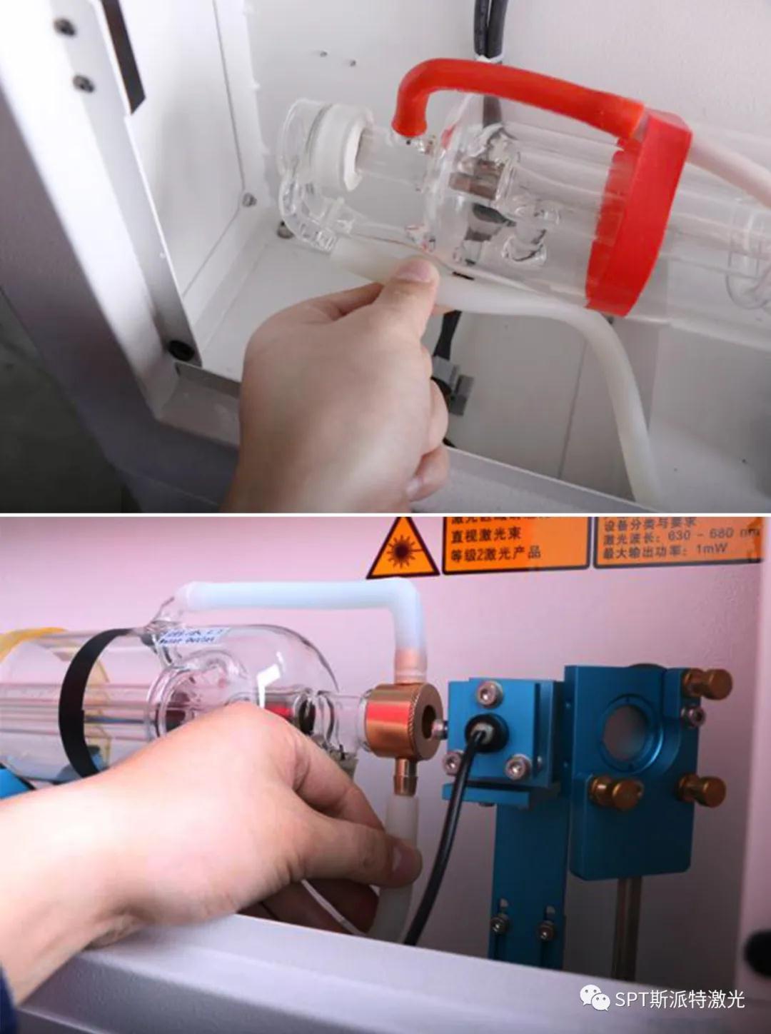 排空激光管中的水,拔掉進出水口水管,取出舊激光管