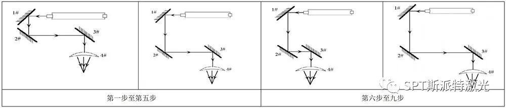 第八步:如果 3#反射鏡膠紙上的兩個標記不重合,調整 2#反射鏡,使這兩個標記中心重合。