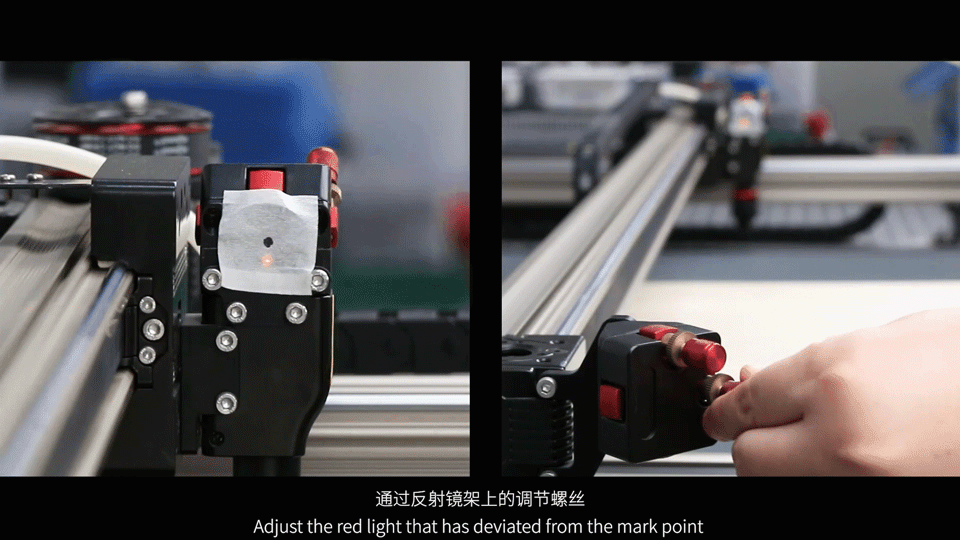 上述動作需重復2-3遍,直到紅光與記號點沒有偏差,完成橫向光路的調整。